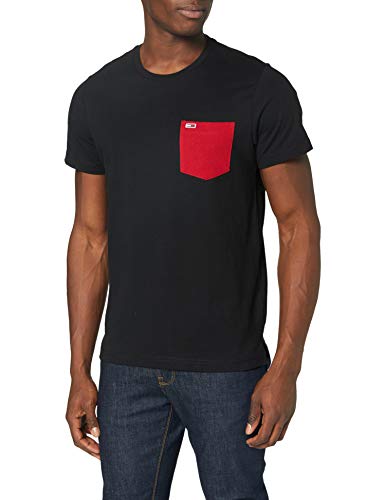 Tommy Jeans TJM Contrast Pocket Tee, Camicia, Uomo, XS, Nero (Black)