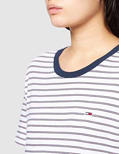 Tommy Jeans Tjw Essential Stripe Tee Maglia Sportiva, Bianco (White 0fa), 38 (Taglia Produttore: X-Small) Donna