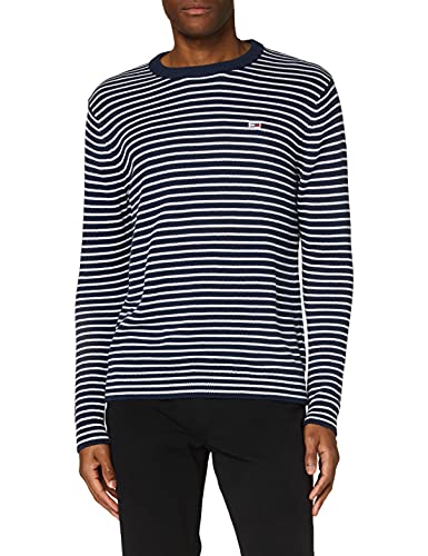 Tommy Jeans Tjm Essential Stripe Sweater Felpa, Black Iris/Classic White, Large Uomo
