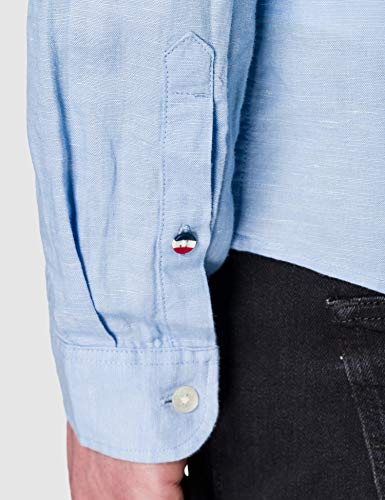 Tommy Jeans Tjm MAO Linen Blend Shirt T, Azzurro, L Uomo