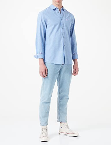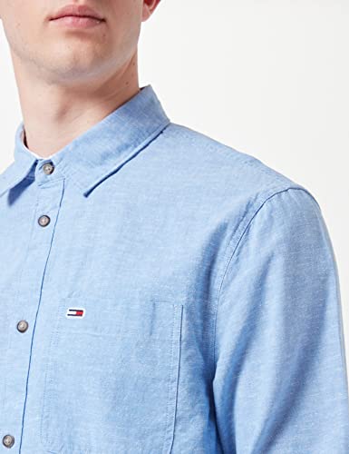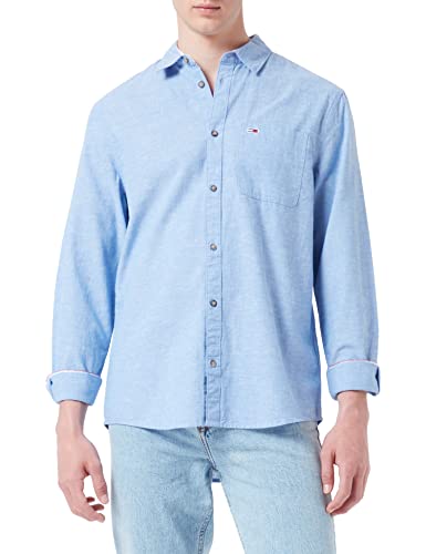 Tommy Jeans Tjm Linen Blend Spring Shirt Camicia, Perfume Blue, XS Uomo