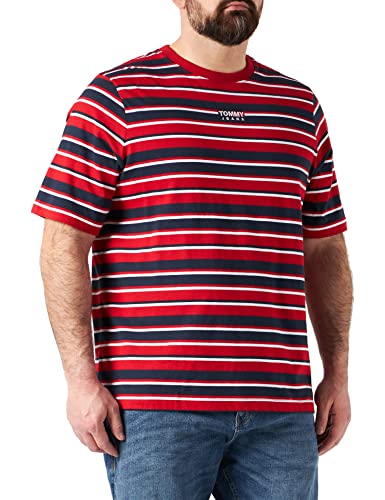 Tommy Jeans Maglietta Tjm Plus con Grafica a Righe T-Shirt, Deep Crimson, XXL Uomo