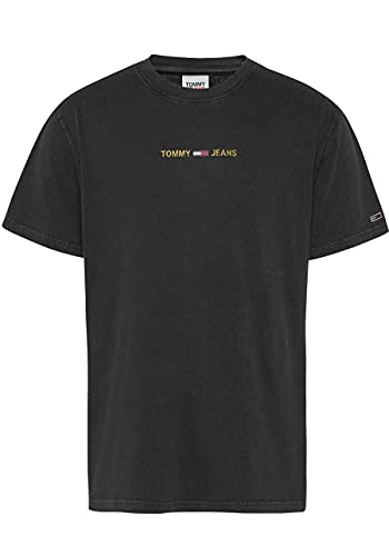 Tommy Jeans Tjm Metallic Linear Logo Tee T-Shirt, Black, S Uomo