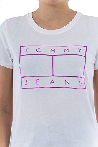 Tommy Jeans Tjw Metallic Flag Tee T-Shirt, Bianco (White Ybr), 36 (Taglia Unica: XX-Small) Donna