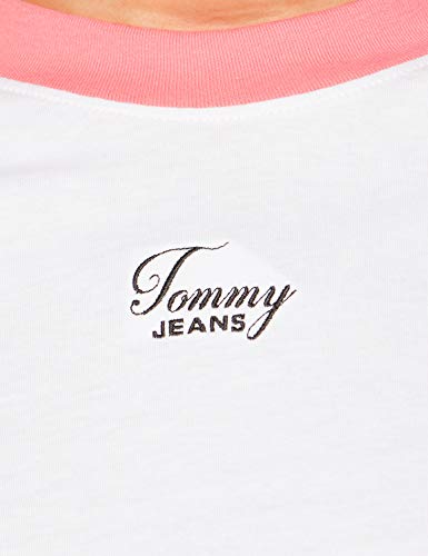 Tommy Jeans Tjw Tommy Raglan Tee Camicia, White/Glamour Pink, S Donna
