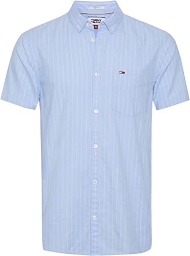 Tommy Jeans Tjm Shortsleeve Stripe Shirt Camicia, Blu (Light Blue/Multi 0ba), Medium Uomo