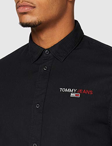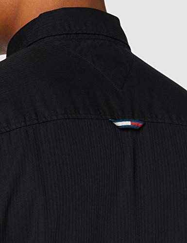 Tommy Jeans Tjm Textured Stripe Logo Shirt Camicia, Black, S Uomo