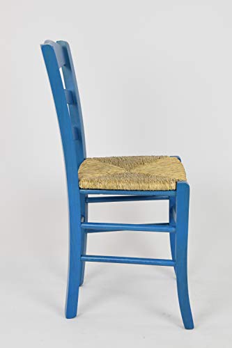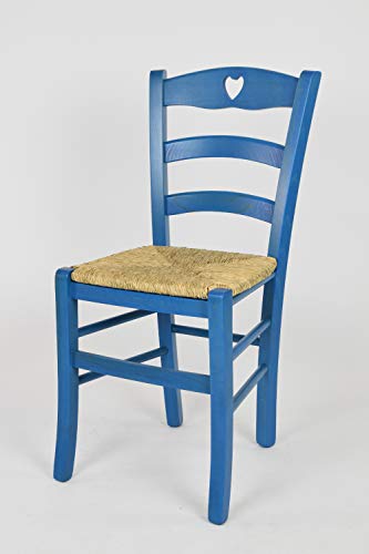 T m c s Tommychairs - Sedia modello Cuore per cucina bar e sala da pranzo, robusta struttura in legno di faggio verniciata in anilina blu e seduta in paglia