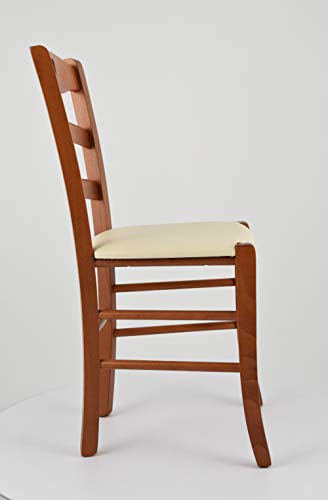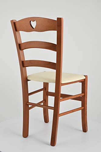T m c s Tommychairs - Sedia modello Cuore per cucina bar e sala da pranzo, robusta struttura in Legno di faggio color ciliegio e seduta rivestita in pelle artificiale colore avorio