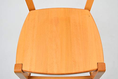MATERIALE: struttura e gambe in legno di faggio DIMENSIONI: altezza totale 88 cm, larghezza totale della sedia 43 cm, profondità totale della sedia 46 cm, profondità della seduta 35 cm, altezza della seduta 48 cm. Dal momento che è un prodotto artigianale, le misure possono variare leggermente PORTATA: max 120 kg con peso uniformemente distribuito sul sedile