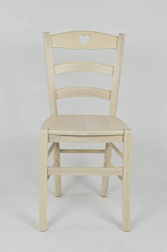 T m c s Tommychairs - Set 4 sedie modello Cuore per cucina bar e sala da pranzo, robusta struttura in legno di faggio verniciata in anilina bianca e seduta in legno