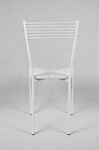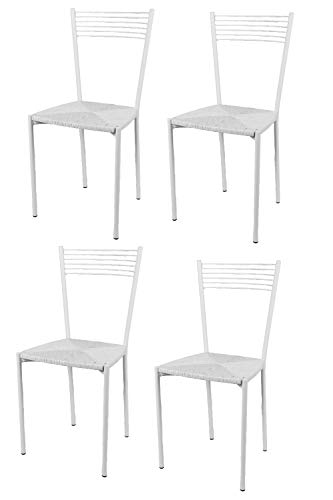 T m c s Tommychairs - Set 4 sedie modello Elegance per cucina bar e sala da pranzo, struttura in acciaio verniciata colore bianco e seduta in finta paglia colore bianco