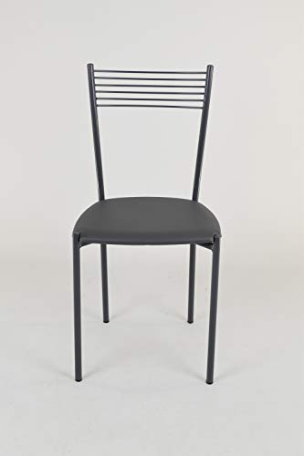 Tommychairs - Set 4 sedie modello Elegance per cucina bar e sala da pranzo, struttura in acciaio verniciata colore grigio scuro e seduta imbottita e rivestita in pelle artificiale colore grigio scuro