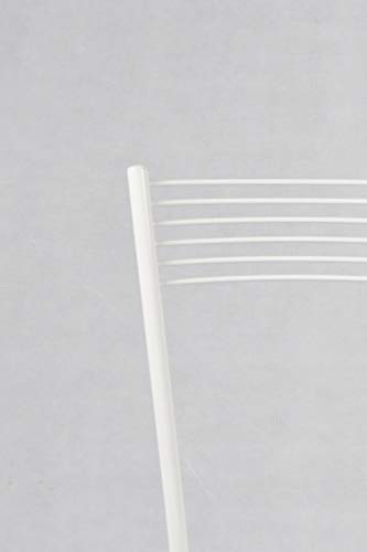 MATERIALE: resistente struttura in acciaio verniciato in bianco. DIMENSIONI: altezza totale 87 cm, larghezza totale della sedia 42 cm, profondità totale della sedia 44 cm, profondità della seduta 38 cm, altezza della seduta 46 cm. Dal momento che è un prodotto artigianale, le misure possono variare leggermente. PORTATA: max. 90 kg con peso uniformemente distribuito sul sedile.