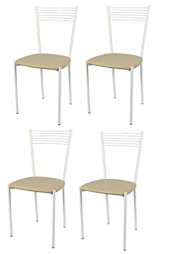 T m c s Tommychairs - Set 4 sedie modello Elegance per cucina bar e sala da pranzo, struttura in acciaio verniciata colore bianco e seduta imbottita e rivestita in pelle artificiale colore lino