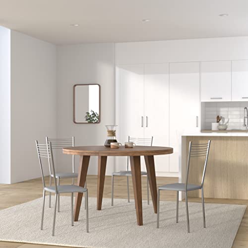 T m c s Tommychairs - Set 4 sedie modello Elegance per cucina bar e sala da pranzo, struttura in acciaio cromato e seduta imbottita e rivestita in pelle artificiale colore grigio chiaro