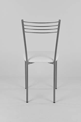 T m c s Tommychairs - Set 4 sedie modello Elena per cucina bar e sala da pranzo, struttura in acciaio verniciato color alluminio e seduta imbottita e rivestita in pelle artificiale colore bianco