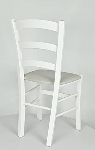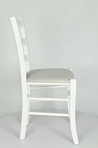 Tommychairs - Set 4 sedie modello Venezia per cucina bar e sala da pranzo, robusta struttura e seduta in Legno di faggio laccato bianco e seduta imbottita e rivestita in tessuto color bianco ostrica