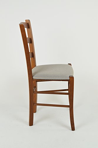 Tommychairs - Set 6 sedie modello Venice per cucina bar e sala da pranzo, robusta struttura in legno di faggio color noce chiaro e seduta rivestita in tessuto colore camoscio