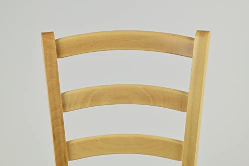 MATERIALE: struttura e gambe in legno di faggio DIMENSIONI: altezza totale 88 cm, larghezza totale della sedia 43 cm, profondità totale della sedia 44 cm, profondità della seduta 35 cm, altezza della seduta 48 cm. Dal momento che è un prodotto artigianale, le misure possono variare leggermente PORTATA: max 120 kg con peso uniformemente distribuito sul sedile