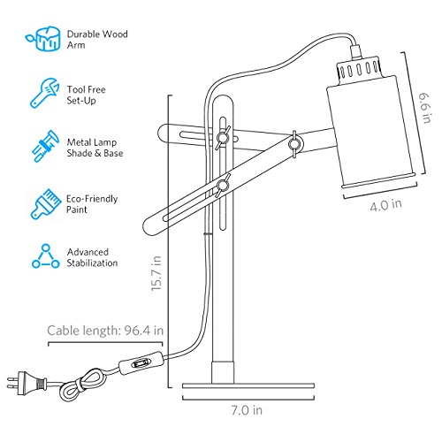 Tomons Lampada da Lettura regolabile in Design Legno classico per tavolo e per scrivania con braccio snodato, lampada da lavoro, da ufficio e da comodino. Lampadina LED/Fluorescente/a, 25W - grigio