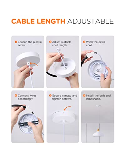 Cavo regolabile: Questa lampada è dotata di un cavo resistente ed elegante, la cui lunghezza può essere regolata allentando la vite di plastica situata sotto l'attacco al soffitto. Potrai regolare facilmente l'altezza del lampadario secondo le tue esigenze.