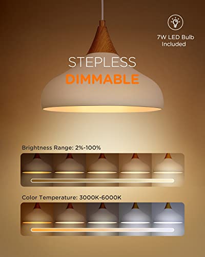 Tomons Lampada a Sospensione Regolabile, Lampadario a Soffitto in Ferro con Telecomando, Stile Scandinavo, Semplice e Moderno, Bianco, Con LED E27 Lampadine