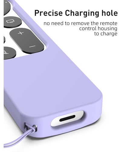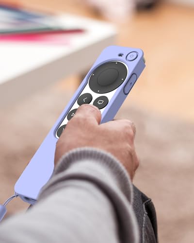 K TOMOTO Compatibile con Apple TV 4K Siri Remote Case 2021, Custodia Protettiva Antiscivolo in Morbido Silicone Setoso per Telecomando Siri di Seconda Generazione [Cordino Incluso], Viola Chiaro