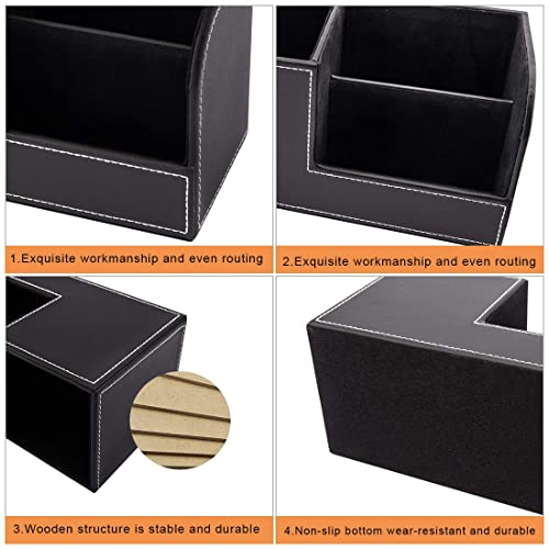 Tompig Organizer Scrivania, Multifunzionale Portapenne,Portaoggetti da scrivania in elegante pelle PU Nero per Organizzatore di Cancelleria, Biglietti da Visita, Penne,Cellulari