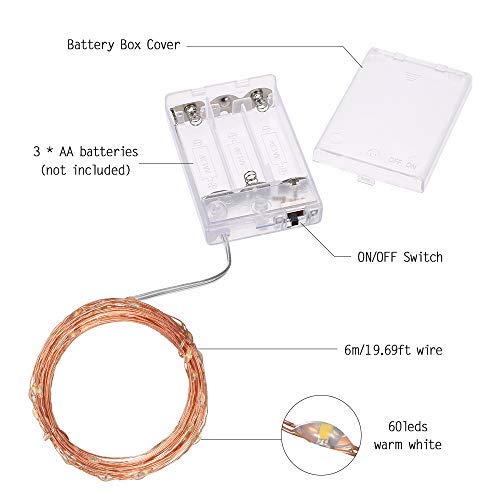 Tomshine Catena Luminosa 6m 60 LED 4PC, Stringa Luci LED a Batteria Luminosa Lucine LED Decorative per la decorazione della festa nuziale di Natale del giardino della camera da letto(Bianco Caldo)