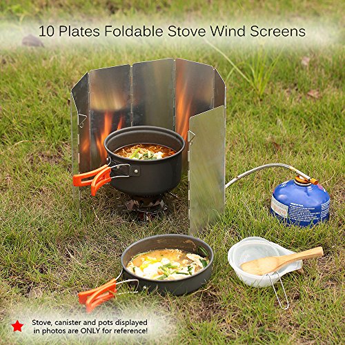 TOMSHOO Stufa Parabrezza Campeggio Parabrezza 8 - 10 Piatti Pieghevole Stufa a Gas Antivento Ultra-Leggero all' Aperto fornello Stufa Parabrezza Alluminio Parabrezza