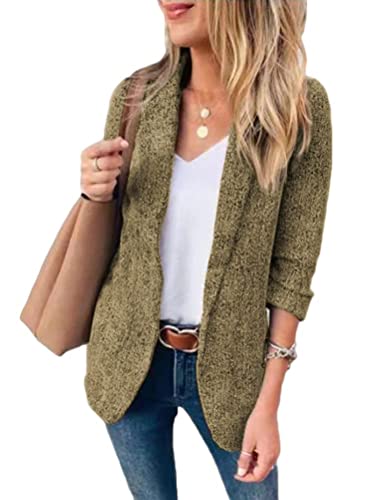 Tomwell Blazer Donna Elegante Manica Lunga Scollo a V Giacca Moda Tintura per Cravatta Giacche Casual Ufficio Business Cardigan Cappotti Cachi M
