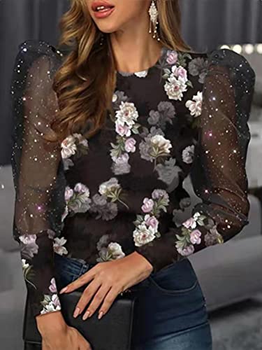 Tomwell Camicia Donna Pizzo Elegante Scollo V Camicia Maniche Corte a Sbuffo Camicetta Trasparenti Bluse Estive H Nero L