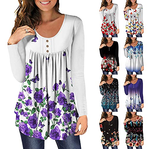 Ideale per primavera/estate, stile sciolto, Il design floreale del bordo nasconde bene la pancia, Le donne incinte possono anche indossare questa camicia!