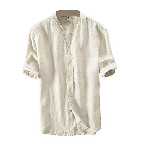 Tomwell Camicie di Lino Camicia Uomo Maniche Corte con V Collo Estive Camicia da Spiaggia
