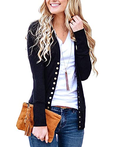 Tomwell Donna Casual Elegante Solid Bottoni Manica Lunga di Lavoro a Maglia con Scollo a V Slim Cardigan Maglione della Ragazza (42, Nero)