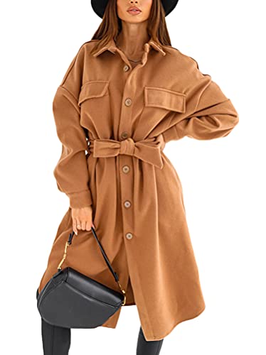 Tomwell Donna Giacca a Vento Cappotto Maniche Lunghe Autunno Inverno Caldo Giacca Lunga Moda Stampato Cardigan A Prova di Vento Spessore Trench Capispalla A Cachi L