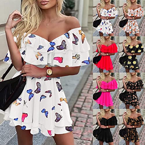 Tomwell Donna Vestiti Senza Spalline Elegante Spalla di Parola Moda Vestito Volant Boho Estivi Cocktail Abiti Asimmetrici per Spiaggia Partito Rosa XL