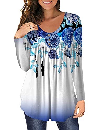 Tomwell Maglietta Donna Manica Lunga Bluse Camicia Floreale Sciolto V Collo Bottone Pieghettata Tunica Tops T Shirt Tuniche A Bianco1 XS