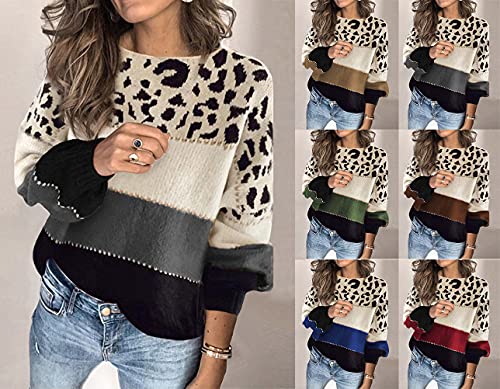 Tomwell Maglione Donna Maniche Lunghe Leopardo Dolcevita Casual Top Pullover Fitness Sweatshirt a Righe Felpa Maglieria Elegante Maglia B Blu XS