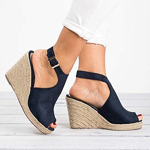 Tomwell Sandali Donna Moda Espadrillas con Cinturino Romani Dolce Casual Zeppa Piattaforma Eleganti Estivi Sandals Blu scuro 39 EU