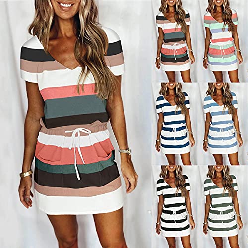 Tomwell Vestiti Donna Casual A Righe Senza Maniche Abito Scollo V Estivo Dress Allacciato Corta Vestiti Tunica Allentata Mini Abito Stampa Abito da Spiaggia con Tasche M Verde M