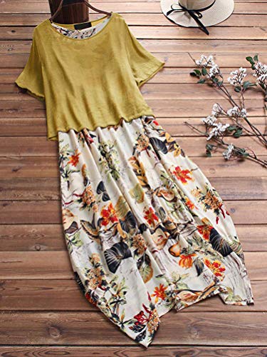 Tomwell Vestito Estivo da Donna Abito Sciolto Manica Lunga Retro Abiti Lunghi Donna Eleganti Camicetta Largo Casual Estivi Vestiti Donna Taglie Forti Club E Giallo IT 38