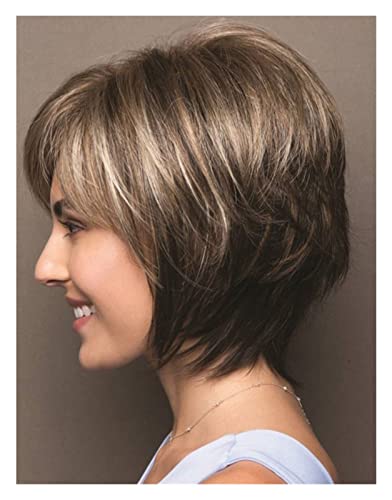 TOMYEUS Parrucche Donne Parrucche Corte Marroni Parrucche for Capelli Naturali Parrucca for Le Donne Parrucca in Fibra (Color: 01, Stretched Length: 8inches)