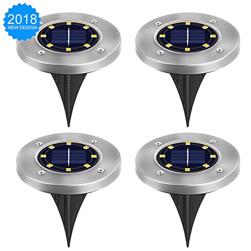 TONBUX luci solari Ground, aggiornato Garden Pathway Lights Outdoor impermeabile bianco caldo con 8 LED (4 pezzi) per vialetto d' accesso, Deck, giardino, paesaggio illuminazione Warm White