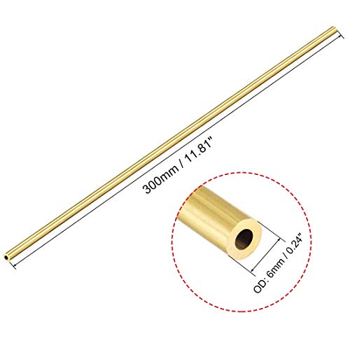 Tubo tondo in ottone, 300 mm di lunghezza 6 mm di diametro diametro 1,5 mm di spessore della parete, tubo dritto senza saldatura, 2 pezzi