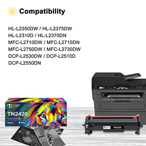 Toner Bank TN2420 Cartuccia Compatibile Toner per Brother MFC L2710DW L2710DN MFC-L2710DW MFC-L2710DN HL-L2350DW DCP-L2510D MFC-L2750DW HL-L2310D MFC-L2730DW TN-2420 TN 2420 TN2410 (Nero, 2-Pack)