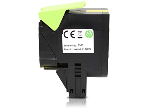 Contenuto della confezione: 1 cartuccia toner giallo, alternativa a Lexmark 71B20Y0, con una resa di stampa fino a 2.300 pagine con copertura del 5% su DIN-A4.