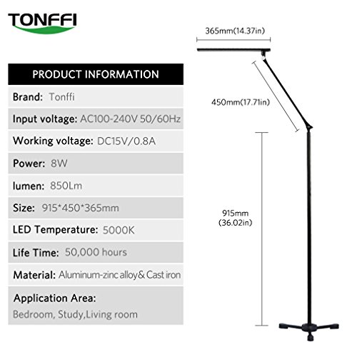 Tonffi Lampada pieghevole del basamento della luce del LED con l'interruttore dimmerabile di tocco bianco di 8W 42LM 5000K cinque luminosità per la vostra stanza di soggiorno e la stanza di lettura ecc. Nero (piedino della lampada del triangolo)