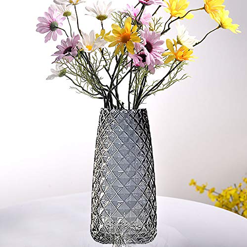 TONGXU Vaso da Fiori in Vetro, Altezza 22cm, Vaso Decorativo Moderno Semi-Trasparente Grigio, Vaso da Arredamento per Ufficio Casa Tavola, Texture di Ananas